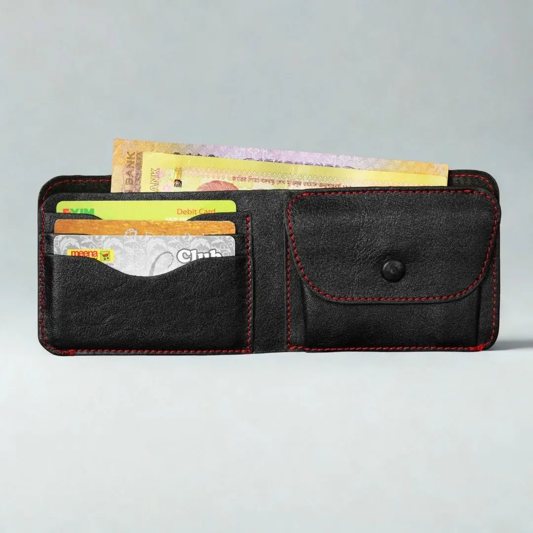 This handcrafted black leather wallet features meticulous stitching and careful edge finishing. Made from high-quality leather, it develops a rich patina over time, giving it a timeless appeal. The slim design offers a sleek, comfortable fit in your pocket while maintaining durability and functionality. 100% Handmade with high-quality black leather. Slim design that fits comfortably in your pocket. Includes multiple card slots and a family photo window. Crafted with attention to detail, this wallet will evolve into a unique and rich patina with every use.