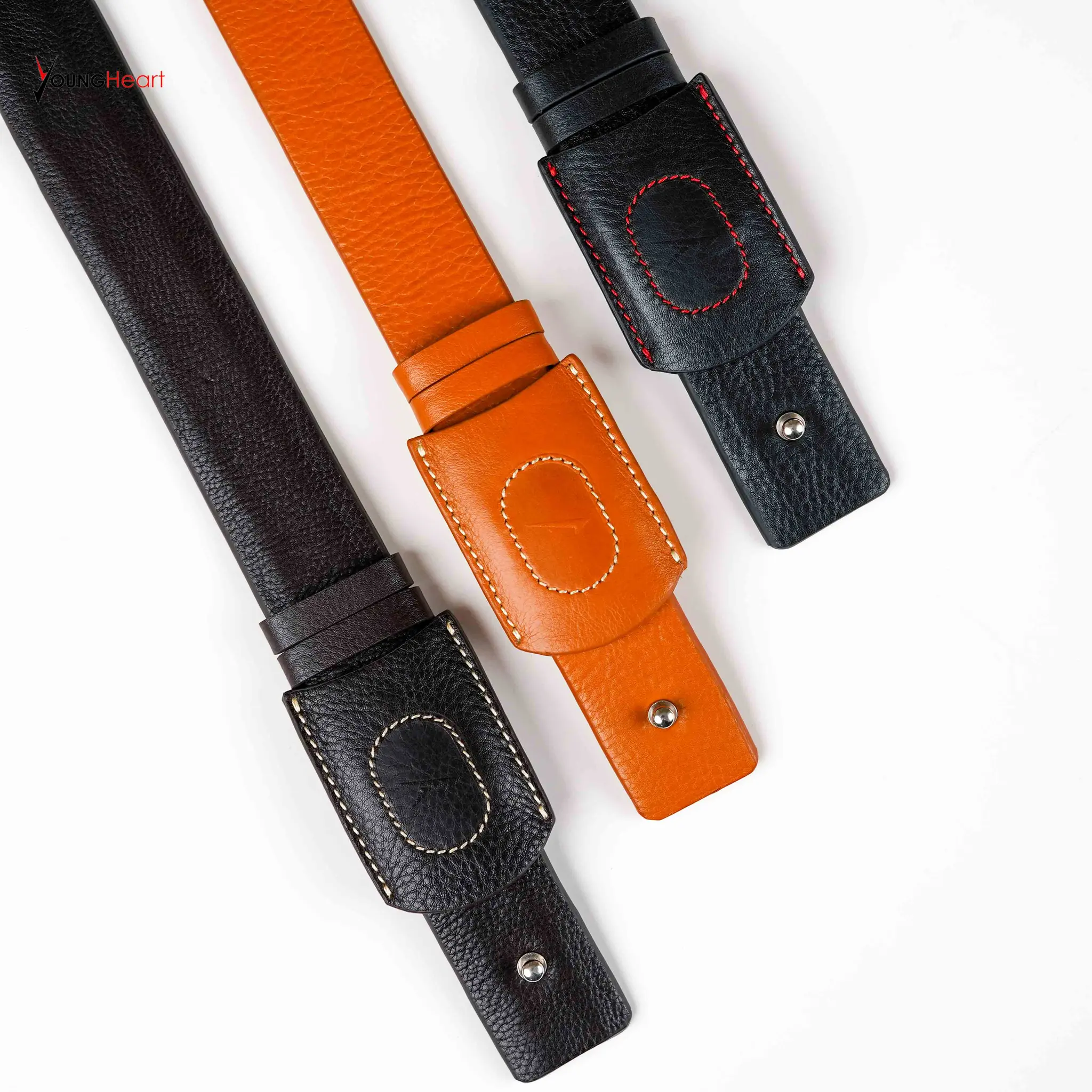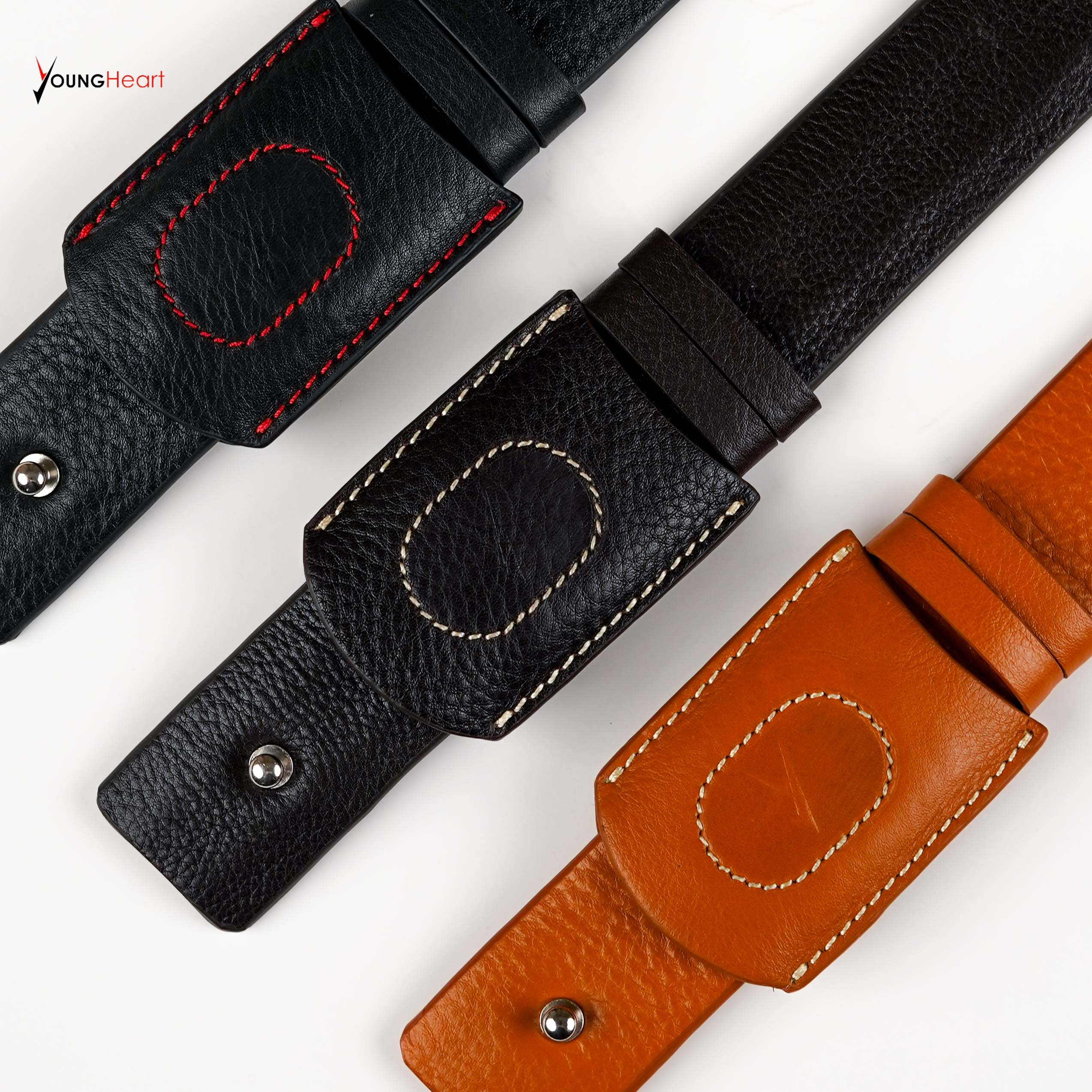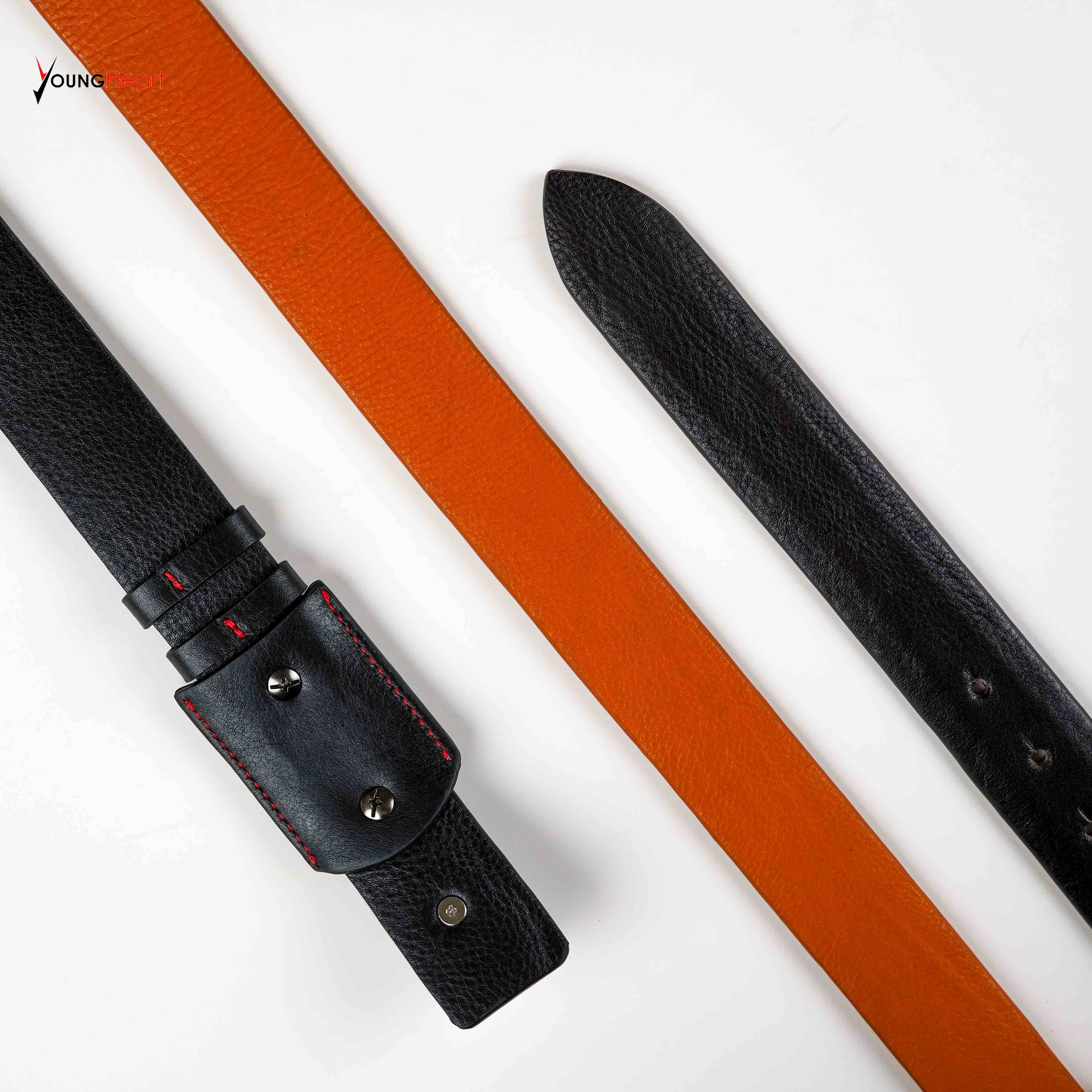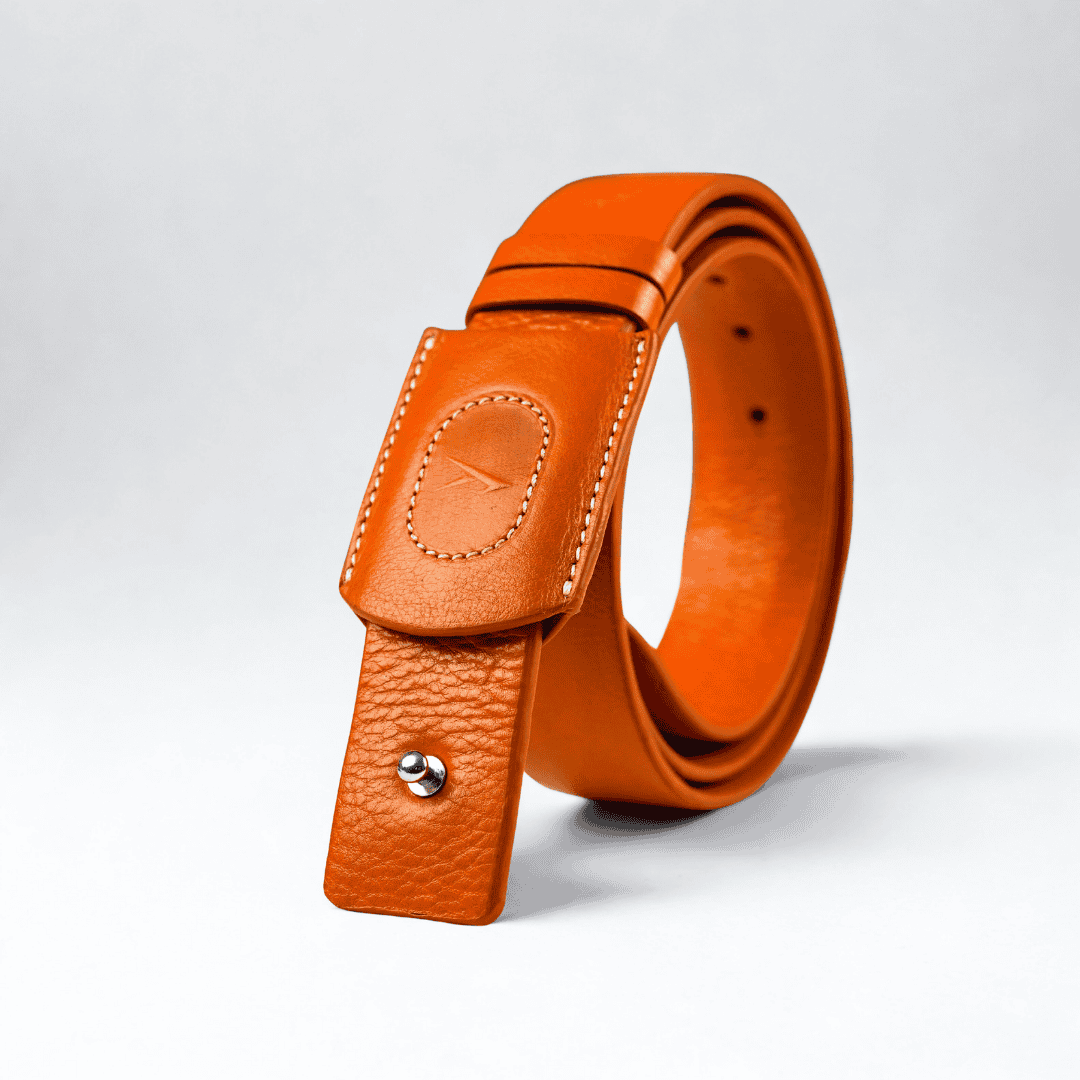 The Titan Minimalist Belt redefines classic waistwear with its innovative stud-fastening design. Crafted from high-quality pebble-grain leather, this belt eliminates the bulk of traditional buckles, offering a sleek, flush look that complements both formal trousers and casual denim. The double-stitched edges ensure maximum durability, maintaining its shape and rich texture over years of wear. It is the perfect choice for someone looking for subtle sophistication and a streamlined silhouette. Key Features: - Minimalist Design: No bulky buckle, providing a seamless and comfortable fit. - Innovative Fastening: Uses a secure stud-lock mechanism for a modern look. - High Durability: Reinforced contrast stitching for long-lasting use. - Versatile Style: Transition easily from corporate office wear to smart-casual events. Color Variants: 1. Classic Black: A timeless, deep black for formal elegance. 2. Burnt Orange: A bold, trendy shade for a standout fashion statement.